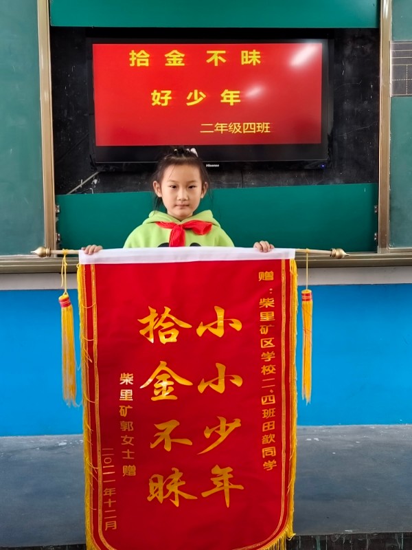 这几天,柴里矿区学校二年四班的小学生田歆拾金不昧的事迹在校园传开,老师和同学们都纷纷为她点赞。